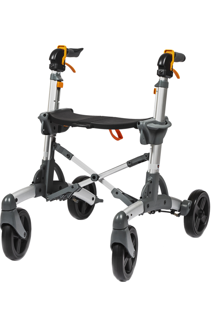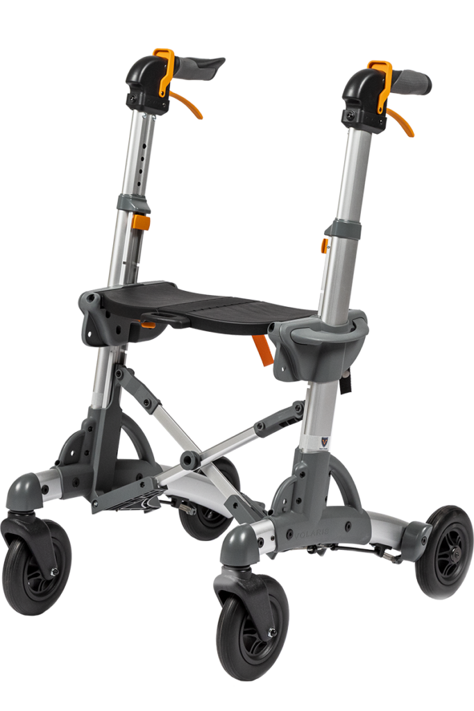 Our well-designed rollators are known for being both lightweight and stable. Volaris includes both flexible indoor rollators, junior rollators as well as durable and robust versions for outdoor use or users with special needs. All models offer high comfort with pleasant steering and compliance, even on uneven ground, as well as a safe, easily accessible brake. The cross construction facilitates folding and handling. All Volaris rollators have a stable seat that is also adjustable in height.