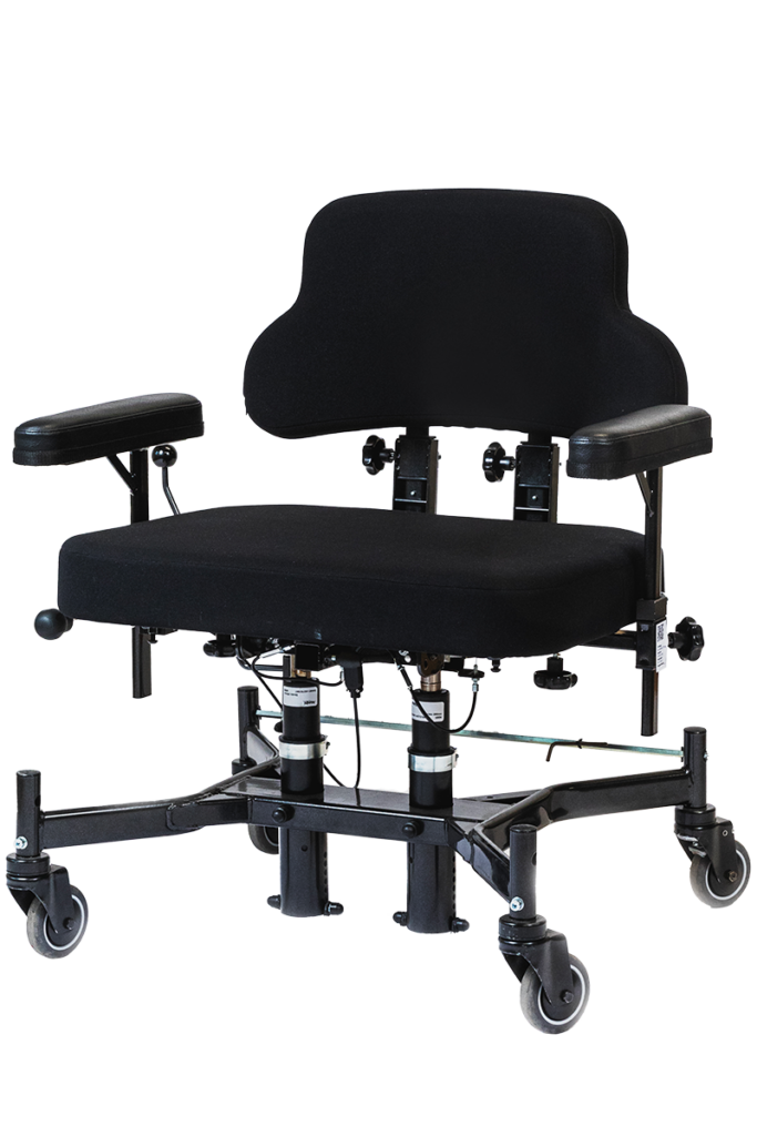 Vår extraförstärkta arbetsstol är speciellt utvecklad för att ge mycket storväxta och tunga personer med funktionshinder en trygg och stabil vardag.